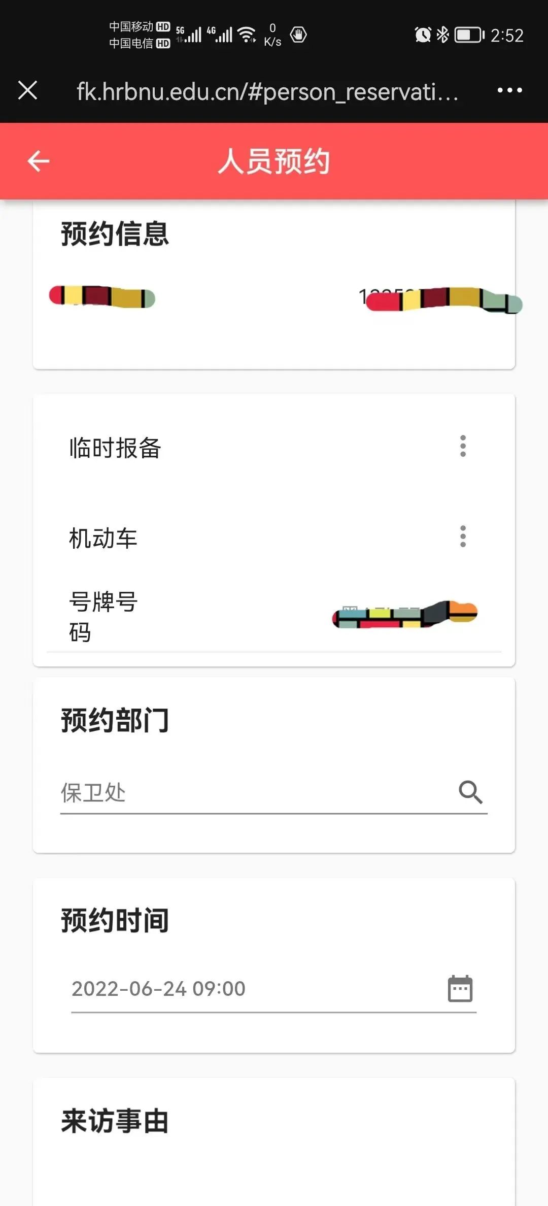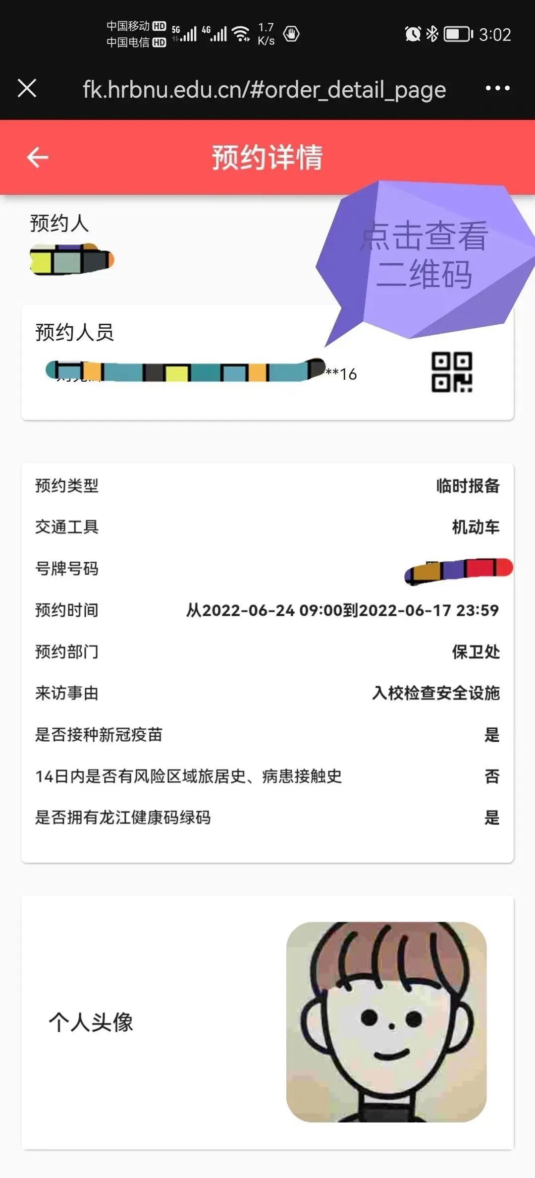 预约成功后一定须和预约部门管理员取得联系,申请审核,审核通过后方能生成绿色的临时预约二维码。