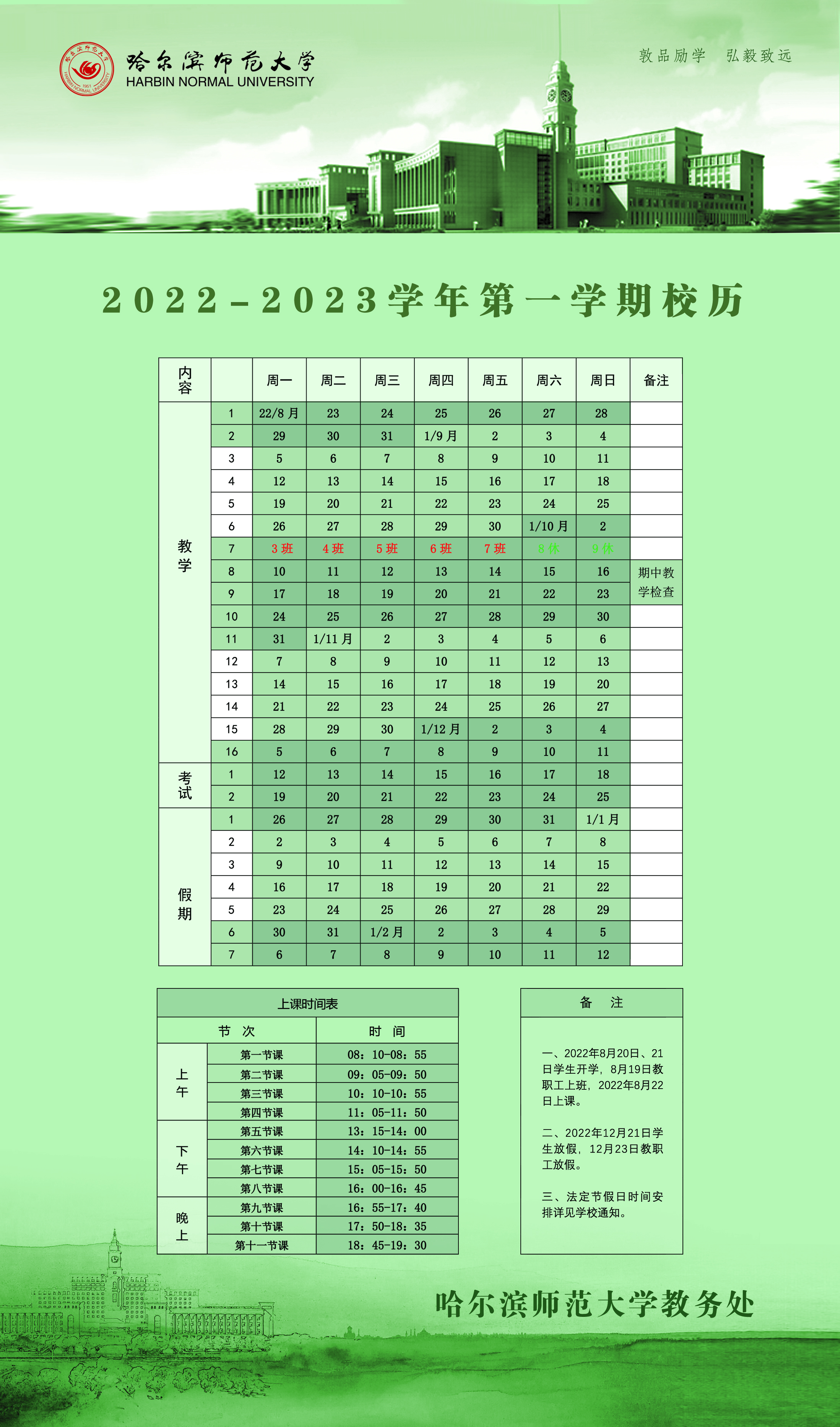 校历|2022-2023学年第一学期校历