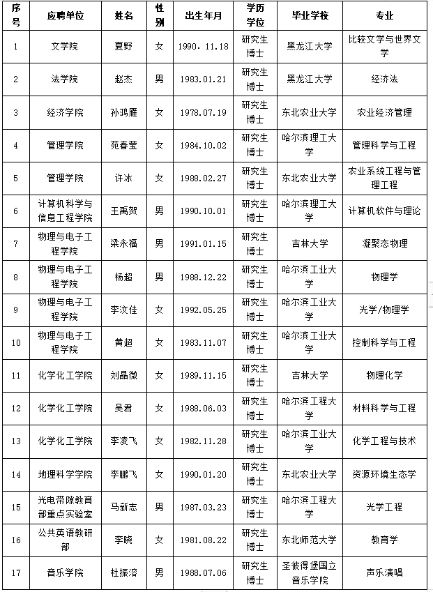 按照《黑龙江省事业单位公开招聘工作人员实施细则》的规定,根据《拼搏在线登录2019年下半年引进人才公告》招聘的原则、程序和方法,经拼搏在线登录校长办公会审定,现将拟聘用人员予以公示,公示期为7个工作日(2020年1月3日-2020年1月13日)。如对拟聘用人员有异议,可在公示期内反映,反映情况和问题必须实事求是,应签署或告知真实姓名、工作单位和联系方式;对线索不清的匿名信和匿名电话,公示期间不予受理。