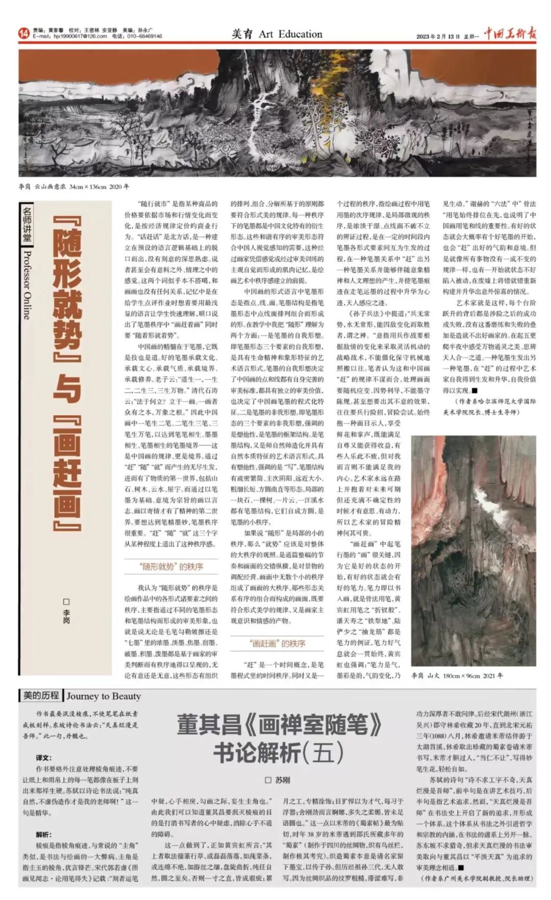 (郭丽娟/文)2月13日,文化和旅游部主管、中国国家画院主办《中国美术报》第298期美育篇的名师讲堂,刊发我校国际美术学院院长李岗署名文章《“随形就势”与“画赶画”》。