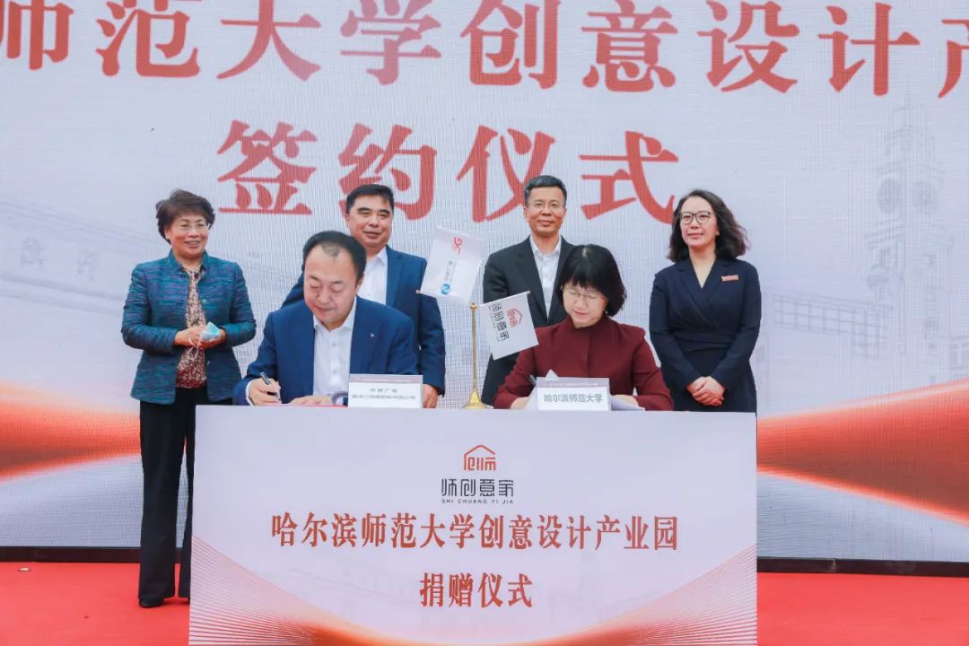 图 启动仪式启动会上,臧淑英代表学校教育发展基金会接受北格集团捐助的创意设计发展教育基金100万元。李庆霞代表学校与中国广电黑龙江网络股份有限公司代表林德峰签订战略合作协议。参会领导共同为拼搏在线登录创意设计产业园揭牌。