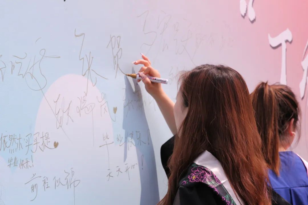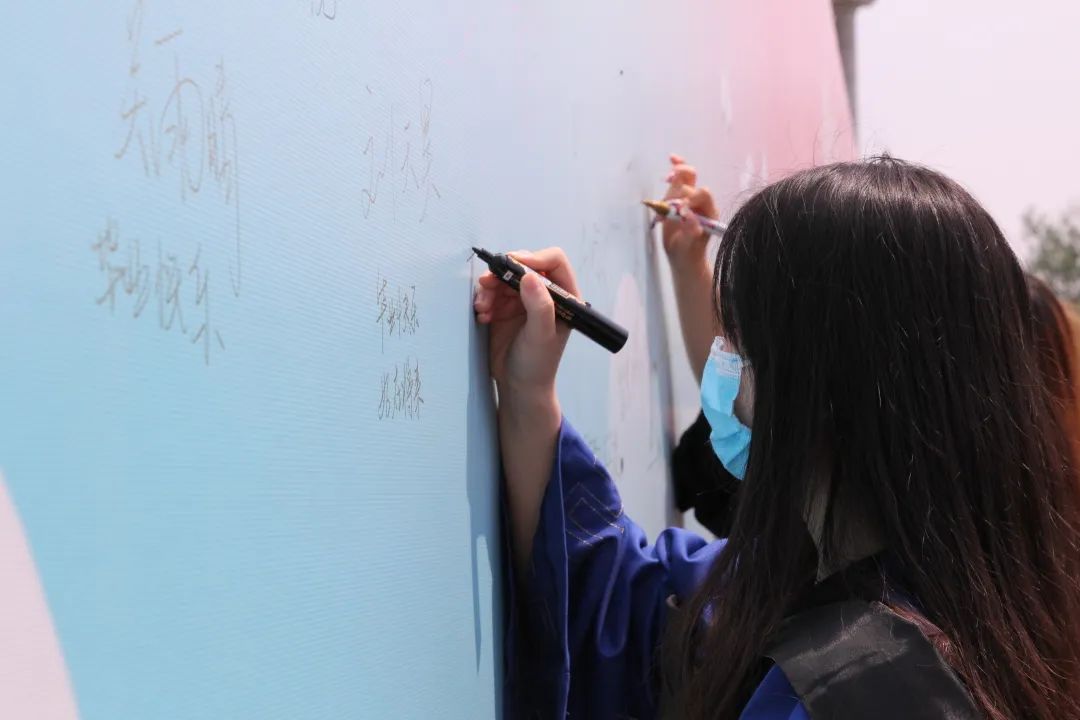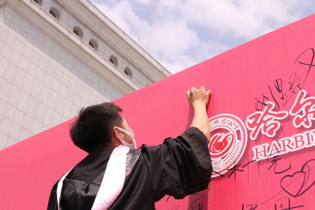 四年回忆,满墙情怀。毕业生们挑选签字笔在签名板上签上自己的名字。那些开心的、难过的、嬉闹的时光,那段青葱岁月都定格在了这一刻,以名字为载体永远的留在了师大。愿有前程可奔赴,亦有岁月可回首。