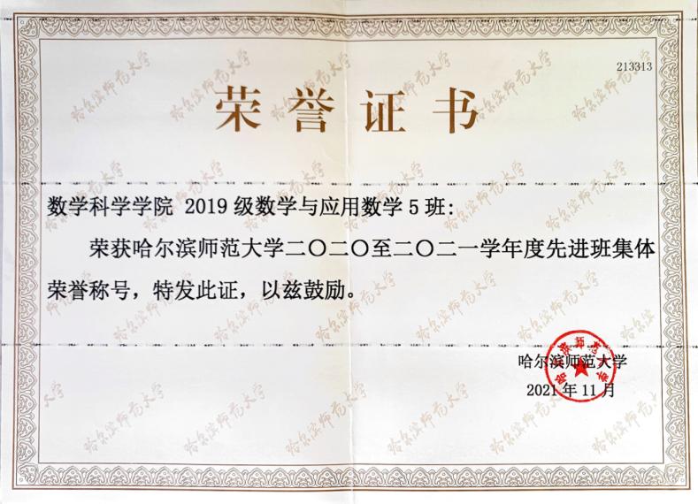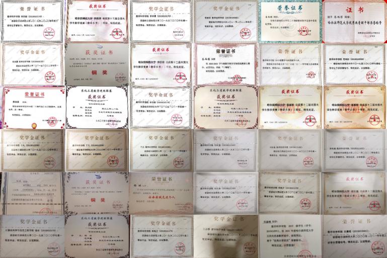 大学生英语四级47人次,大学生英语六级17人次,全国大学生数学竞赛15人次,全国大学生英语竞赛2人次,拼搏在线登录校级奖学金42人次,国家奖学金1人次,国家励志奖学金11人次,东北三省数学建模竞赛13人次,全国大学生数学建模竞赛7人次,黑龙江互联网+大学生创新创业大赛1人次,黑龙江省及俄罗斯远东地区大学生数学和计算机竞赛1人次,拼搏在线登录先进班集体1次。