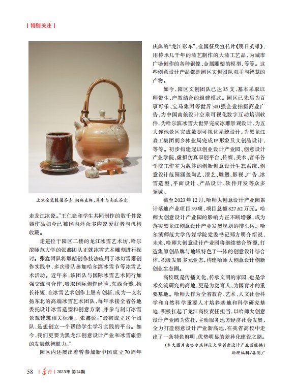 日前,《奋斗》杂志2023年第24期特别关注栏目以《演绎设计精彩 点亮创意未来》为题,报道了我校创意设计产业园在产教融合、深耕创意设计及产出成果等方面的基本情况。