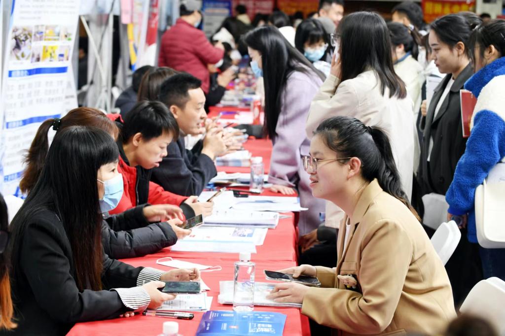 我校2023届毕业生积极抓住大型招聘会单位多、岗位优、好集中的有利时机,踊跃参会,积极沟通用人单位,投递简历。招聘会现场人山人海,气氛喜庆热烈,很多优质岗位台前排起长队,竞争优质工作资源。整场招聘会参与人数超8000人,共投递简历56000余份。