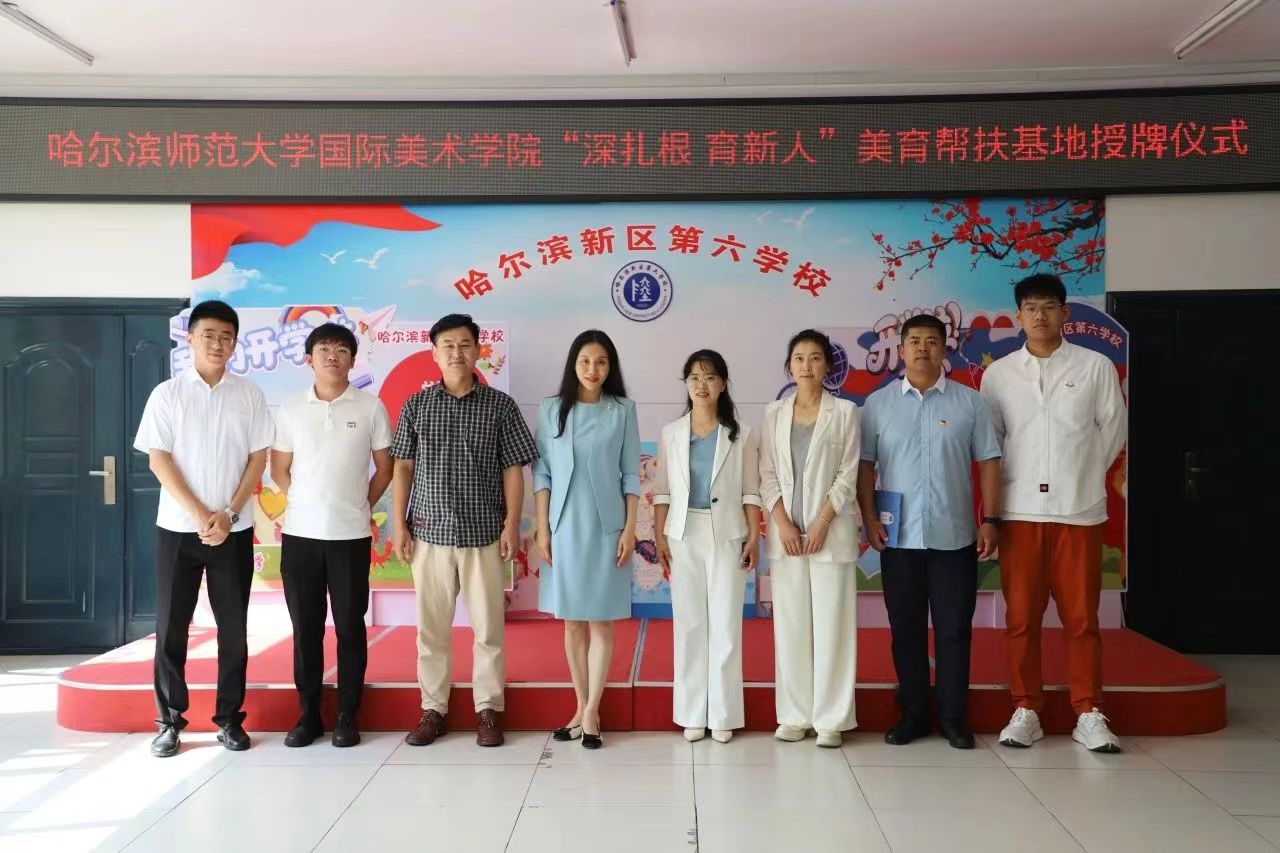 李卓为哈尔滨新区第六学校进行授牌。国际美术学院“深扎根,育新人”美育帮扶项目正式在哈尔滨新区第六学校落地。