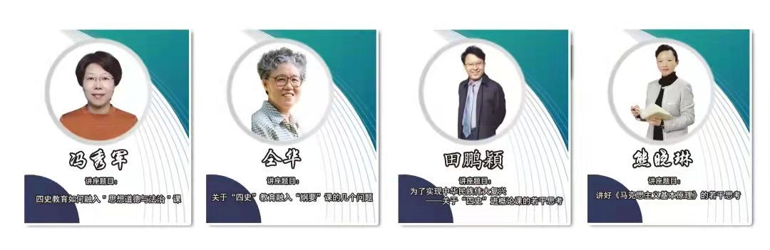 中央财经大学马克思主义学院院长冯秀军教授、北京大学马克思主义学院仝华教授、东北大学马克思主义学院院长田鹏颖教授、北京师范大学马克思主义学院熊晓琳教授等4位教育部高等学校思想政治理论课教学指导委员会委员应邀出席,围绕思政课各门课程中如何融入“四史”教育这一主题作了培训讲座。