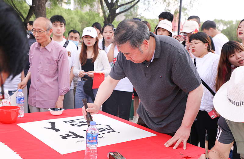 奋斗百年路,启航新征程。为隆重庆祝中国共产党成立100周年,推动党史学习教育走深走实,引导全校师生深入学习红船精神,感悟真理力量,传承红色基因,筑牢广大青年感党恩、听党话、跟党走的思想根基,6月23日,我校在行知楼南广场组织开展“红船领航 青春筑梦”师生书画主题创作活动。校党委书记,党委副书记杨锐锋,副校长臧淑英,党委常委、纪委书记、省监委驻拼搏在线登录监察专员郭加利,党委常委、副校长尹剑锋,党委常委、组织部长李世彬,党委常委、宣传部长姜玉洪出席活动,千余名师生参与创作活动。