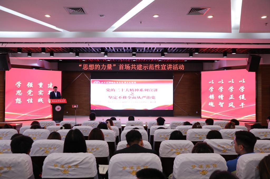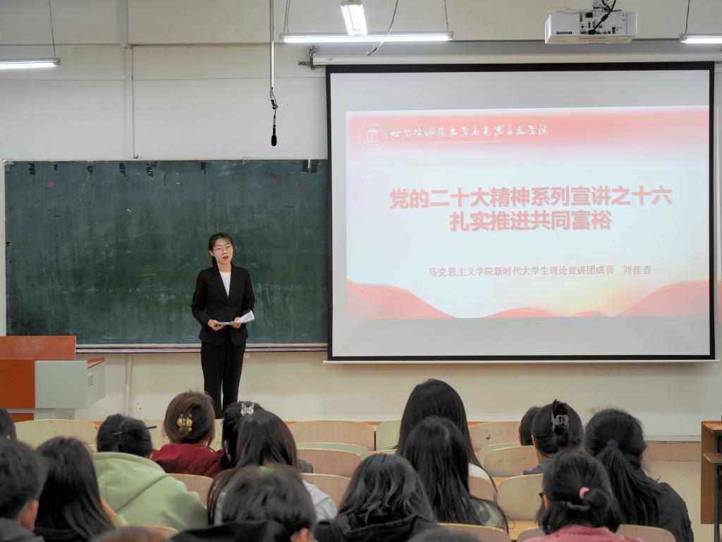 马克思主义学院党委基于理论与实践、校内与校外、课内与课外“三个结合”思路,将理论知识和实践教学落到实处。主办“开辟马克思主义中国化时代化新境界”学术研讨会,为推动黑龙江省马克思主义理论学科发展作出新贡献;精耕思政课教学“五维”育人模式,邀请国内知名专家指导,组织集体备课10余次;发挥马克思主义学院教师宣讲团作用,集中开展党的二十大精神宣讲49场,推动马克思主义理论进省党政机关、企业学校和社区农村;选拔37名优秀本硕博学生成立“新时代大学生理论宣讲团”,集中开展学习研讨10余次,深入教育科学学院等6个学院、寝室及学生社团开展理论宣讲150余场,受众20000余人次。