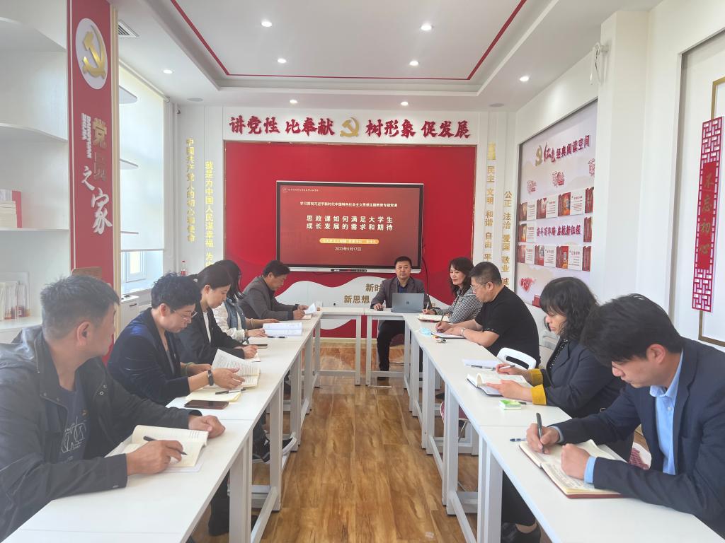 马克思主义学院党委把深入开展主题教育作为一项重大政治任务,同全面落实立德树人根本任务、重点马院建设发展紧密结合,全员参与,内外联动,形成多维度全覆盖学习体系。坚持班子带头学,通过自己学、读书班、专家讲,以“关键少数”带动全员跟进,在全院形成上行下效的良好氛围;坚持教研室党支部专题学,通过集体备课会、主题党日等,推进党的最新理论进教案、进课堂、进头脑;坚持主题教育向青年大学生延伸学,通过举办读书会、晨讲、班团会等活动,引导青年学生从党的创新理论中汲取强大力量。