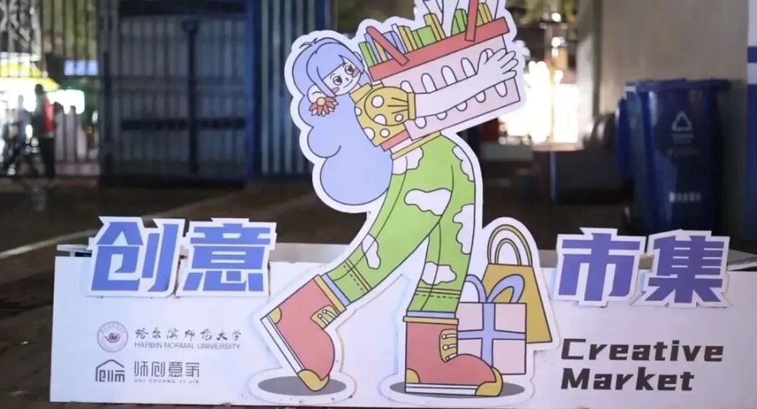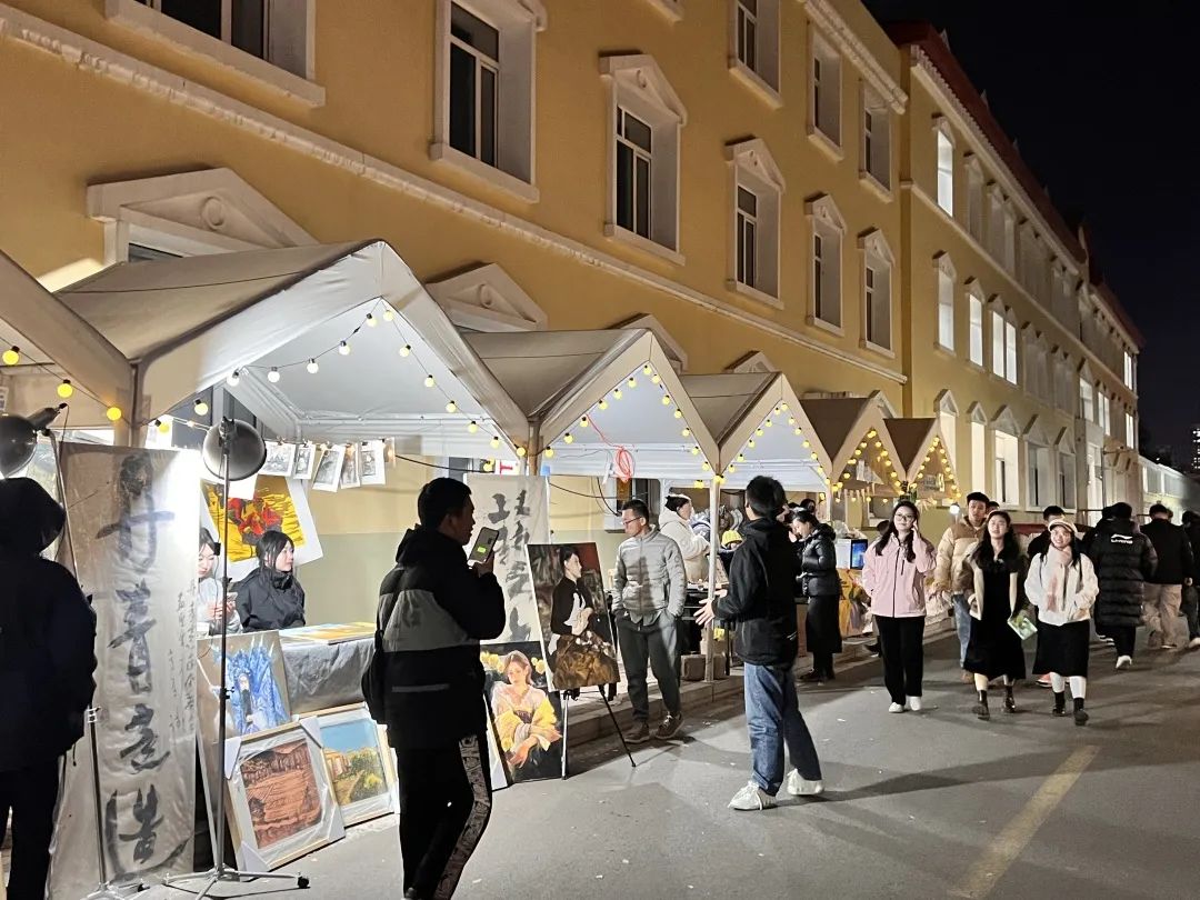 据悉,秋季“创意市集”共设置50余个摊位,涵盖文化创意、数字科技、智慧生活、创意非遗、特色文旅等众多板块,设置了扎染区、蜡染区、泥塑展示区、创意毛笔字体验区、书法篆刻区、绘画涂鸦体验区、油画展示区、木刻版画体验区等。“创意市集”利用师大夜市的富集效应,实施“创意设计+”战略,为城市夜生活增添了“创意亮色”,已经成为冰城新晋网红打卡地,获得了社会广泛赞誉和好评。