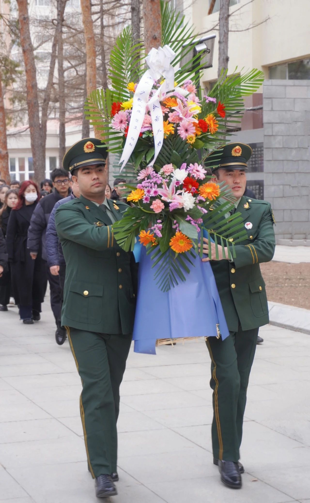 步入烈士陵园,道路两旁的烈士诗抄碑林墙和三组烈士浮雕群默默歌颂着先烈们英勇无畏、爱国爱党的伟大精神品质。在庄严肃穆的氛围中,全体师生来到无名烈士纪念铜塑前,少数民族在校退役士兵、马克思主义学院2022级学生图尔贡江·图尔荪托合提、地理科学学院2022级学生克然·加合甫江向革命先烈敬献花圈,其余师生依次有序地敬献花束,以表达对先烈们最崇高的敬意和最深切的缅怀之情。