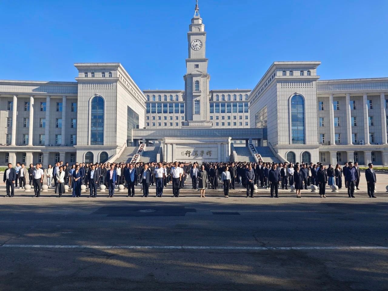 (屈怀东/文)为大力弘扬教育家精神,贯彻落实立德树人根本任务,扎实推进“三全育人”综合改革试点工作,强化高素质专业化教师队伍建设,激励全校师生争做新时代好教师,9月2日,我校在国旗广场举行“弘扬教育家精神,争做新时代好老师”主题升旗仪式。校党委副书记、工会主席郭砾出席仪式并讲话。宣传部(教师工作部)、学生工作部(学生处、武装部)、校团委、学生就业指导处主要负责同志,各学院党委副书记、辅导员代表和学生代表共同参加升旗仪式。仪式由学生工作部(学生处、武装部)部(处)长王彦庆主持。