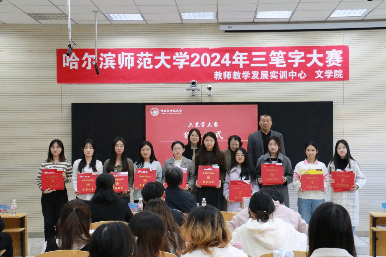 为加大国家通用语言文字推广力度,实施教育家精神铸魂强师行动,提高教师培养培训质量,加强师范生基本功训练,展现未来教师技能风采,由教师教学发展实训中心和文学院共同承办的我校2024年度三笔字大赛圆满落下帷幕。校长蒋鲲出席决赛颁奖仪式,教师教学发展实训中心、文学院主要负责同志,文学院评委及参赛选手参加颁奖仪式。