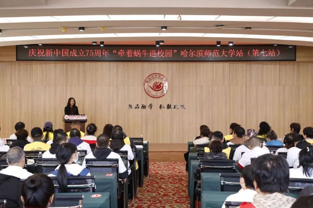 为进一步发挥青年志愿者力量,践行志愿服务精神,弘扬扶残助残社会新风尚,积极营造全社会理解、尊重、关心、帮助残疾人的浓厚氛围,11月8日,由黑龙江省残疾人联合会发起,省委社会工作部、团省委联合主办的“牵着蜗牛进校园”系列公益助残志愿服务活动——艺术之旅在我校成功举办。省残联、省智力残疾人及亲友协会、中国狮子联会哈尔滨代表处、都市女性广播相关负责同志出席活动启动仪式,我校团委书记刘春玲参加仪式并致辞,仪式在我校图书馆一楼报告厅举行。