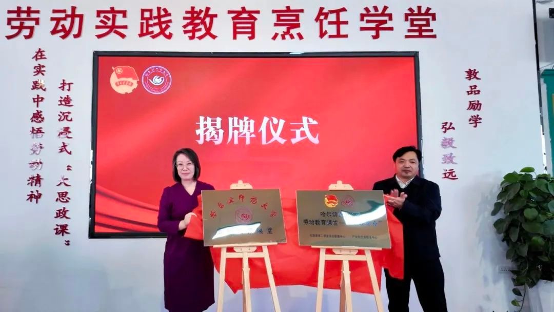 郭砾、尹剑锋为“拼搏在线登录劳动教育课堂”和“烹饪学堂”揭牌
