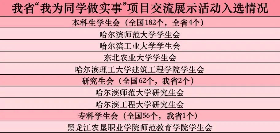 近日,由共青团中央指导、全国学联主办、贵州省学联承办的全国高校学生会组织“我为同学做实事”项目交流展示活动入选结果发布。