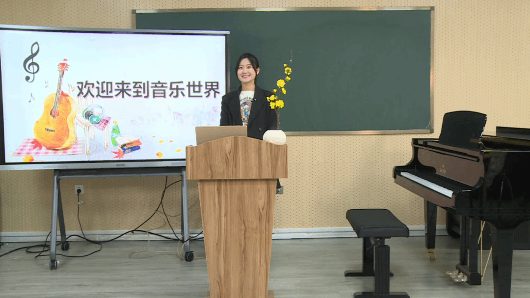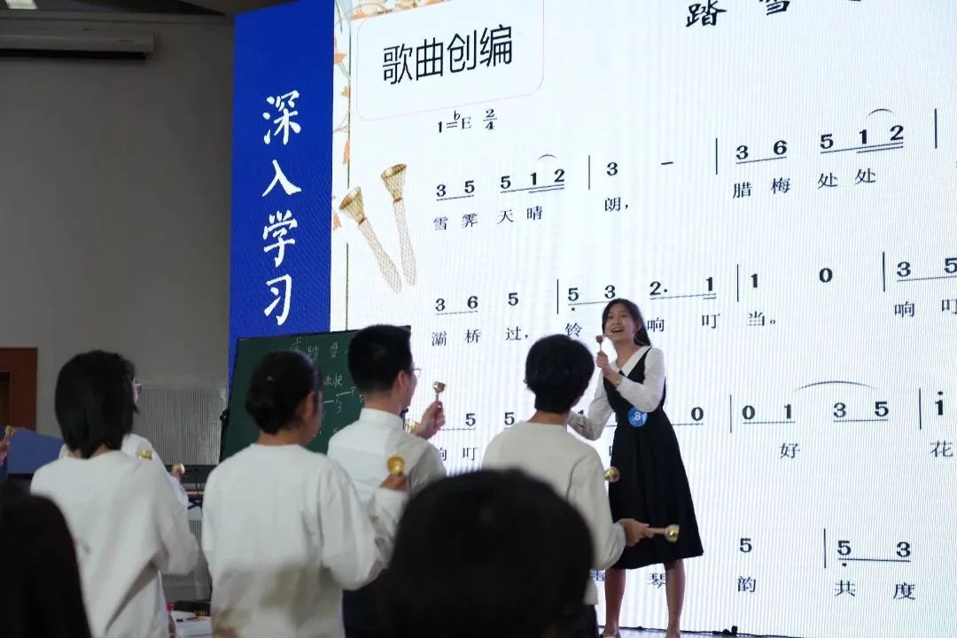 “墙角数枝梅,凌寒独自开……”悠扬的音乐伴着王安石的古诗词《梅花》,激发了同学们对学习歌曲《踏雪寻梅》的兴趣,而这堂课就是曹业炫同学的获奖参赛课程。她以对歌词、节奏、旋律等深入的解析、富有激情的演唱和课堂巧妙的设计,逐步增强了学生们对歌曲意境的理解和情绪内涵的体验。她在课堂上巧妙地运用音乐教学教具与学生团进行互动,教态自然大方,极具亲和力,寓教于乐,使同学们充分感受到音乐课与中华传统文化相互融合的氛围。
