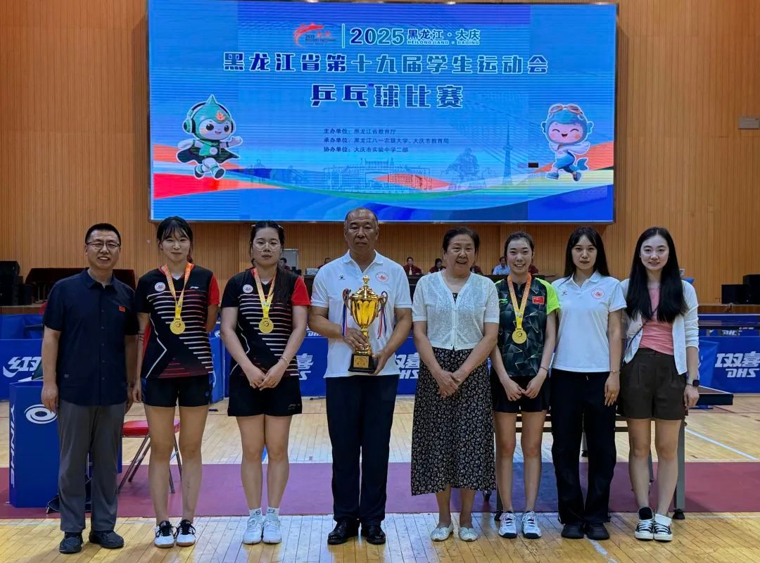 我校乒乓球队由冯铁南担任领队,张宇华、李嘉睿担任教练,男女共4名队员组成。队员们带着团结拼搏的信念投入比赛,在赛场上展现了精湛的球技与顽强的斗志。经过多轮激烈角逐,乒乓球队最终取得包括女子团体、单打、双打共3枚金牌的优异成绩。具体成绩如下:女子团体金牌:王天芯、吴限、曹冰蕾;女子单打金牌:王天芯;女子单打亚军:吴限;女子单打第四名:曹冰蕾;乒乓球女双冠军:王天芯、吴限;混合双打第四名:韩墨、曹冰蕾。