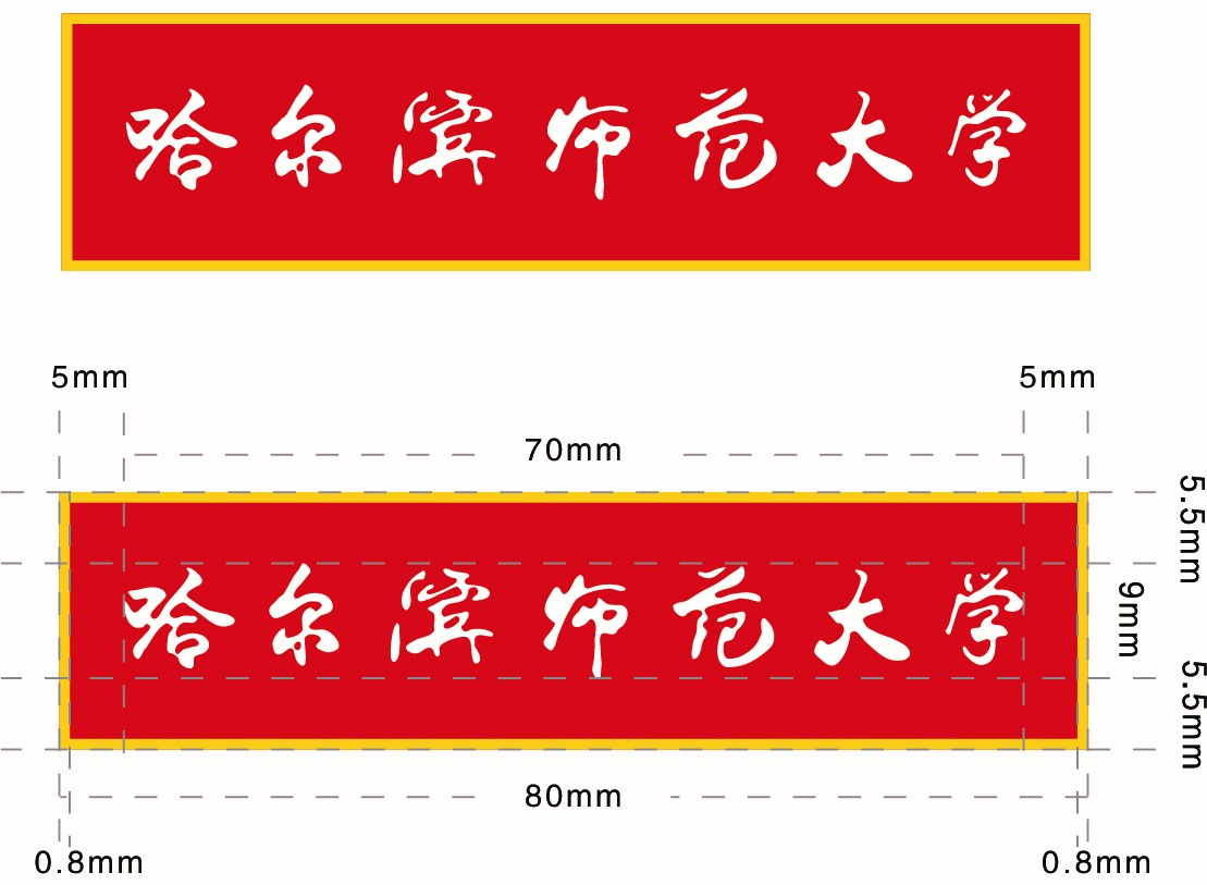 1.长方形校徽为题有校名的长方形徽章。校名字体为欧阳中石手书体。学生长方形校徽为白底红字,配以银色边框;教职工长方形校徽为红底白字,配以金色边框。