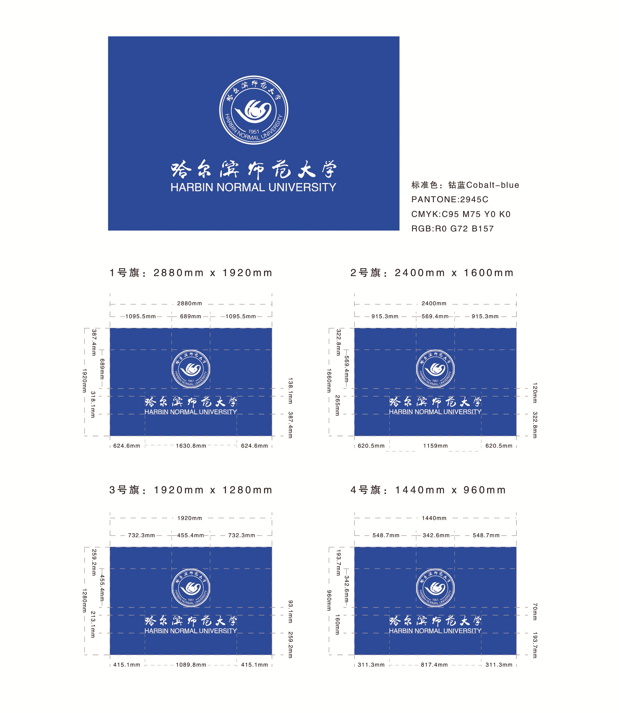 学校校旗旗面为钴蓝色,辅助色为白色,构成要素为校标,采用居中对称的排版方式。