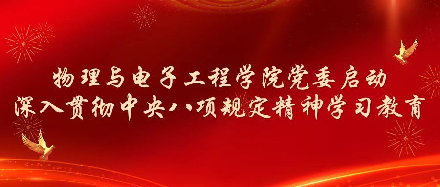 3月28日上午,物理与电子工程学院在理工二号楼317会议室举行党委(扩大)会议,启动深入贯彻中央八项规定精神学习教育。学院领导班子成员、党委委员、各党支部书记参加会议。会议由学院党委书记邓铁男主持。会议以“第一议题”的形式学习了习近平总书记在贵州考察时、在云南考察时的重要讲话精神,重点学习了习近平总书记考察时关于学习教育的重要指示精神;学习了《习近平关于加强党的作风建设论述摘编》、省委常委会会议暨省委党的建设工作领导小组会议精神、学校党委《关于在全校开展深入贯彻中央八项规定精神...