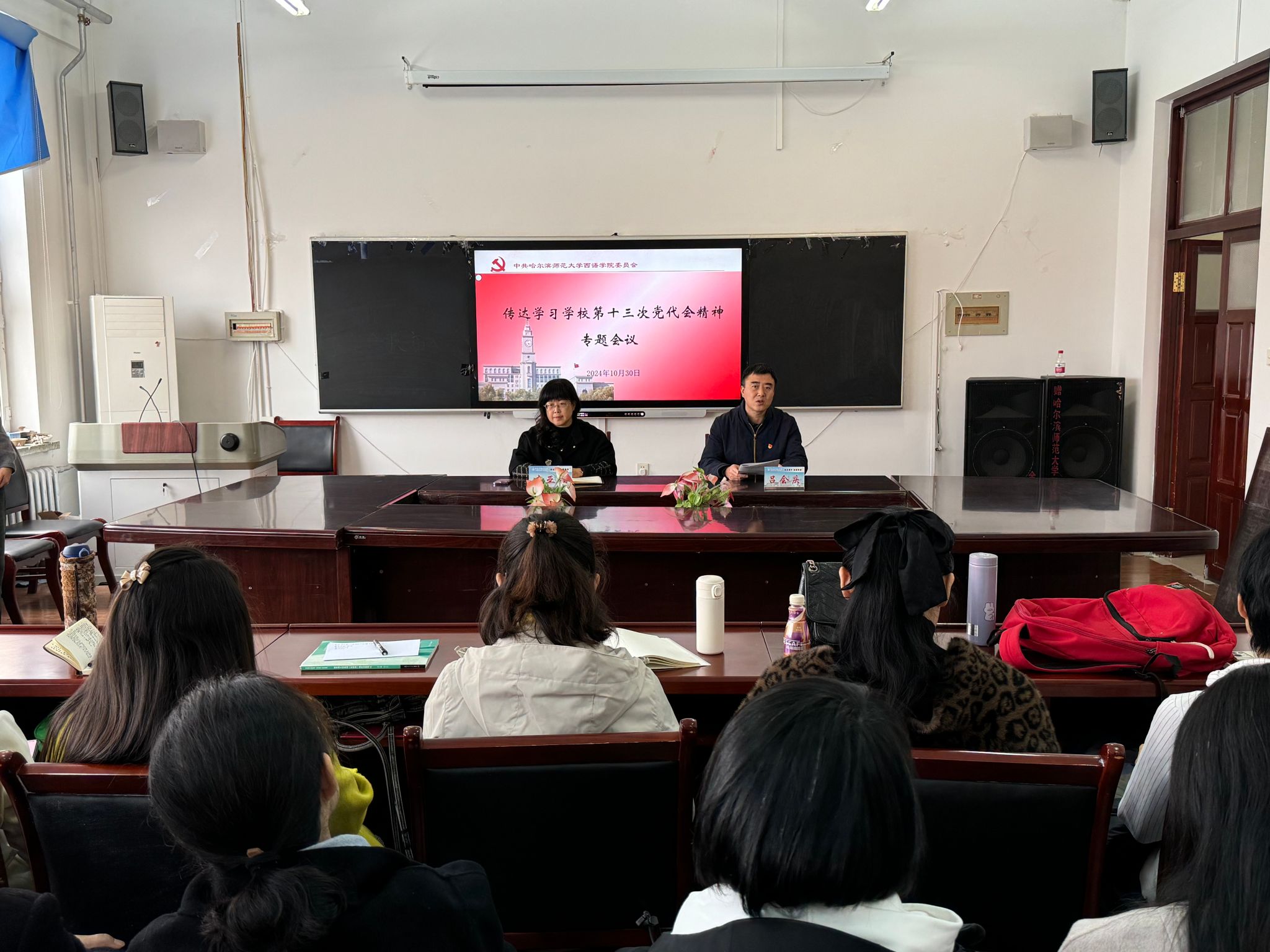 会议要求,全院要把学习宣传贯彻学校第十三次党代会精神作为当前和今后一个时期的重要政治任务。全体教职工要认真研读第十三次党代会相关材料,深刻领会本次党代会的精神实质和核心要义;学院领导班子、各党支部、各系、各教研室要组织学习、研讨活动,深刻领会今后五年学校工作的重点任务,结合学院实际和党代会的决策部署,探索学院工作的立足点、结合点、着力点;全院师生要将思想和行动统一到党代会精神上来,把智慧和力量凝聚到完成党代会确定的战略目标和各项任务上来,勠力同心、真抓实干,踔厉奋发、勇毅前行,为推动学院各项事业高质量发展和学校建设“国内一流师范大学”宏伟目标贡献力量。